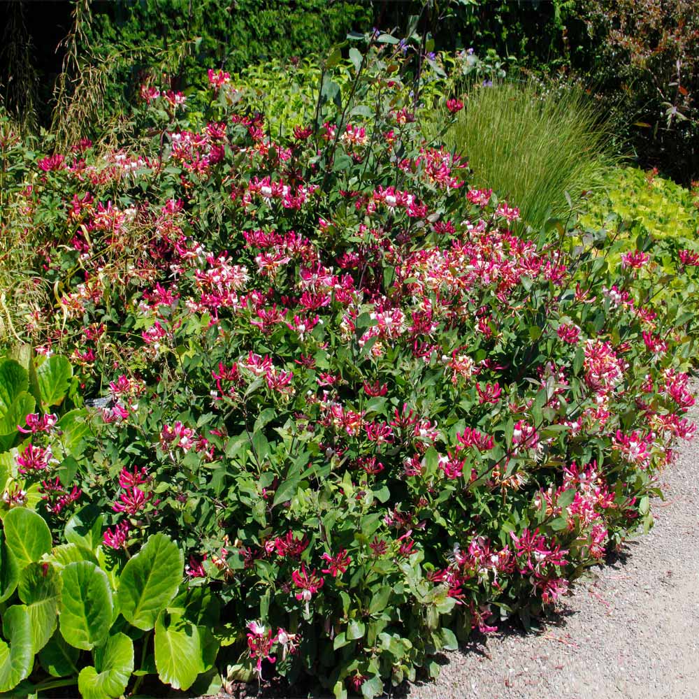 This dwarf variety of this vine can grow upwards of 10 feet with a spread of 3-4 feet. It has a hardy life cycle, living up to 20 years in ideal environments. The compact nature of the vine allows simple trellising from fences and other landscape structures.. The plant retains shape easily and will not take over the garden. Full sun is ideal (although partial shade is fine), and it can handle even the worst drought, heat, or humidity. The Honeysuckle is mildew resistant and is typically pest and disease free. Zones 4-9 are the best growing climates. Prune the plant several times during the first growing season for effective upright growth. The vine grows in all types of soils as long as it has consistent watering. Simply deadhead the flowers in the late spring and summer, and the plant will reward you with more showy flowers.
